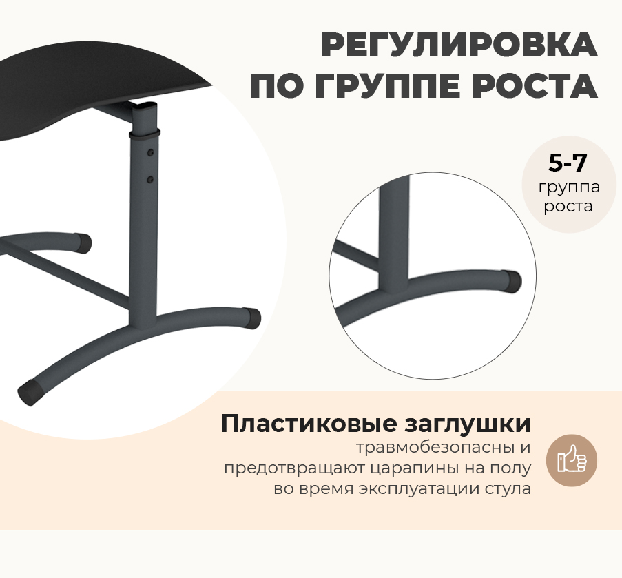 Функция регулировки по высоте обеспечивает комфортное положение и поможет в выработке правильной осанки. Регулируются по высоте на 5-7 группы роста. В каждую упаковку стула вложены наклейки с номерами ростовых групп — вы можете использовать их для удобной маркировки.