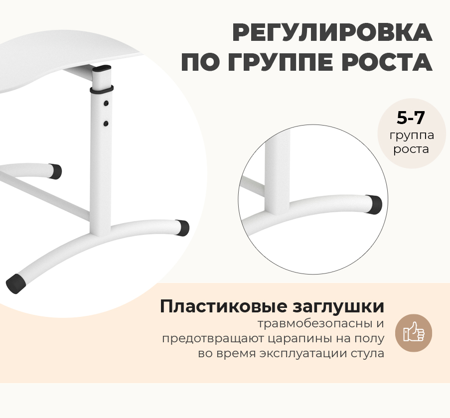 Функция регулировки по высоте обеспечивает комфортное положение и поможет в выработке правильной осанки. Регулируются по высоте на 5-7 группы роста. В каждую упаковку стула вложены наклейки с номерами ростовых групп — вы можете использовать их для удобной маркировки.