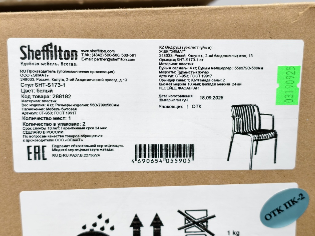 Каждый стул проходит испытания на устойчивость, прочность и безопасность. Выдерживает продолжительные нагрузки - максимальная статическая нагрузка 200 кг.
