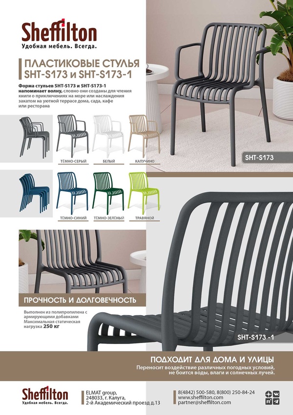 Форма стула SHT-S173-1 напоминает волну, словно стул создан для чтения книги о приключениях на море или наслаждения закатом на уютной террасе дома, сада, кафе или ресторана.