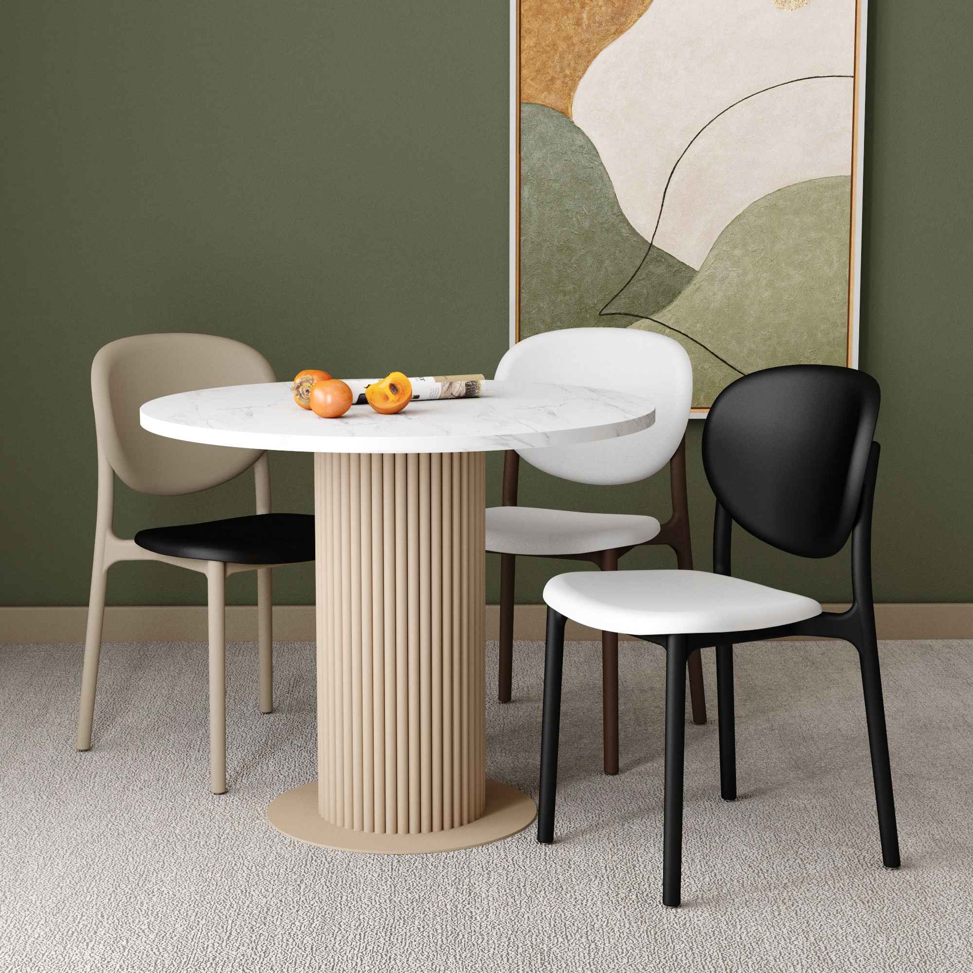 Благодаря округлой форме и объёмному силуэту, стул визуально воспринимается как мягкий и воздушный. Такой дизайн не только делает интерьер более лёгким, но и визуально добавляет уюта.