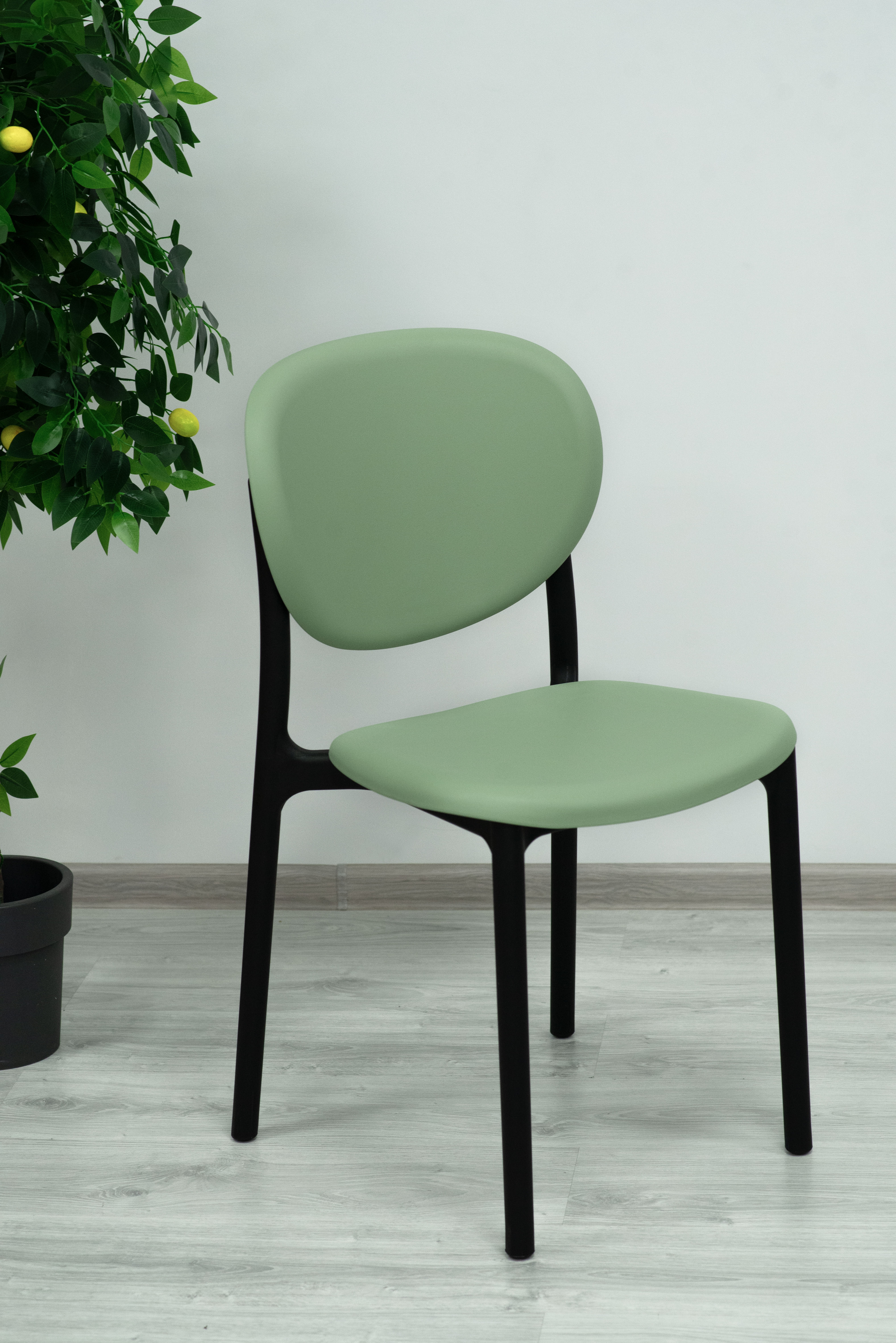 Благодаря округлой форме и объёмному силуэту, стул визуально воспринимается как мягкий и воздушный. Такой дизайн не только делает интерьер более лёгким, но и визуально добавляет уюта.