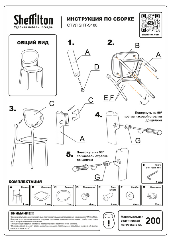 Каждый стул проходит испытания на устойчивость, прочность и безопасность. Выдерживает продолжительные нагрузки - максимальная статическая нагрузка 200 кг.