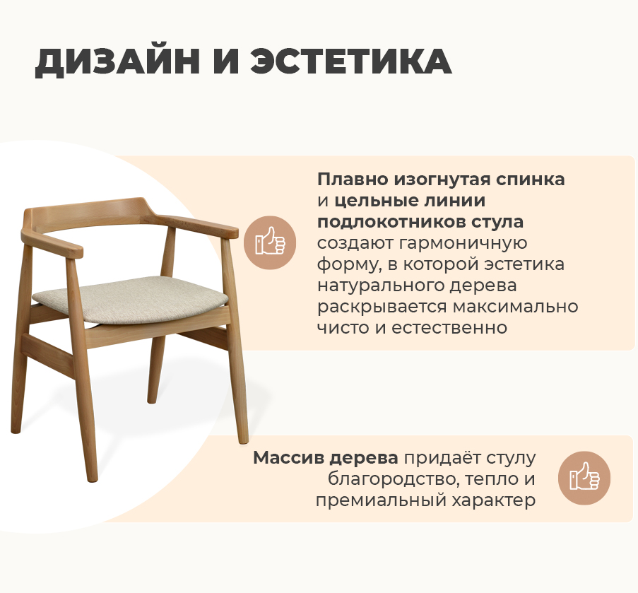 Каркас стула выполнен из массива бука — природного материала, известного своей прочностью и устойчивостью к износу. Мягкое сиденье выполнено из рогожки, сочетающей приятную фактуру и практичность в уходе. Каждый элемент стула SHT-S204 продуман до мелочей, чтобы сохранять форму и стабильность даже при ежедневном использовании.