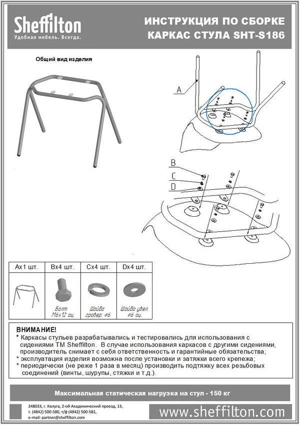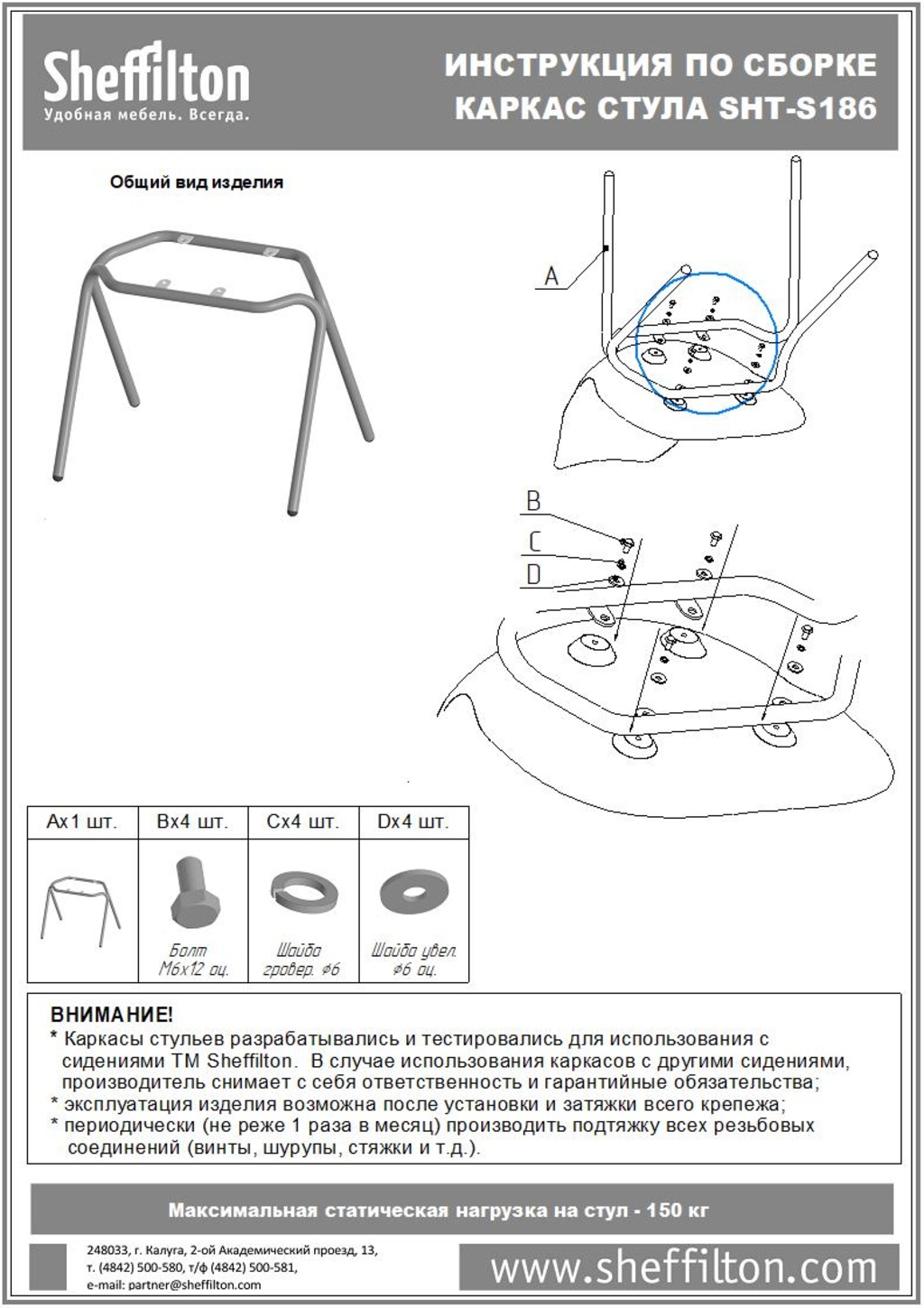 СПЕЦИАЛЬНЫЕ ПОДПЯТНИКИ каркаса обеспечивают защиту покрытия от царапин и повышают устойчивость стула. К каркасу приложен комплект крепежа и схема сборки.