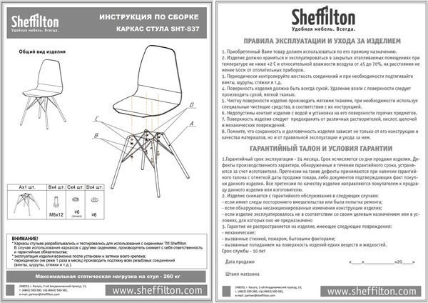 СПЕЦИАЛЬНЫЕ ПОДПЯТНИКИ каркаса обеспечивают защиту покрытия от царапин и повышают устойчивость стула. К каркасу приложен комплект крепежа и схема сборки.