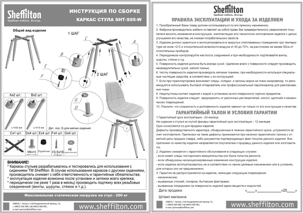 Характеристики индивидуальной упаковки Каркас стула SHT-S95-W