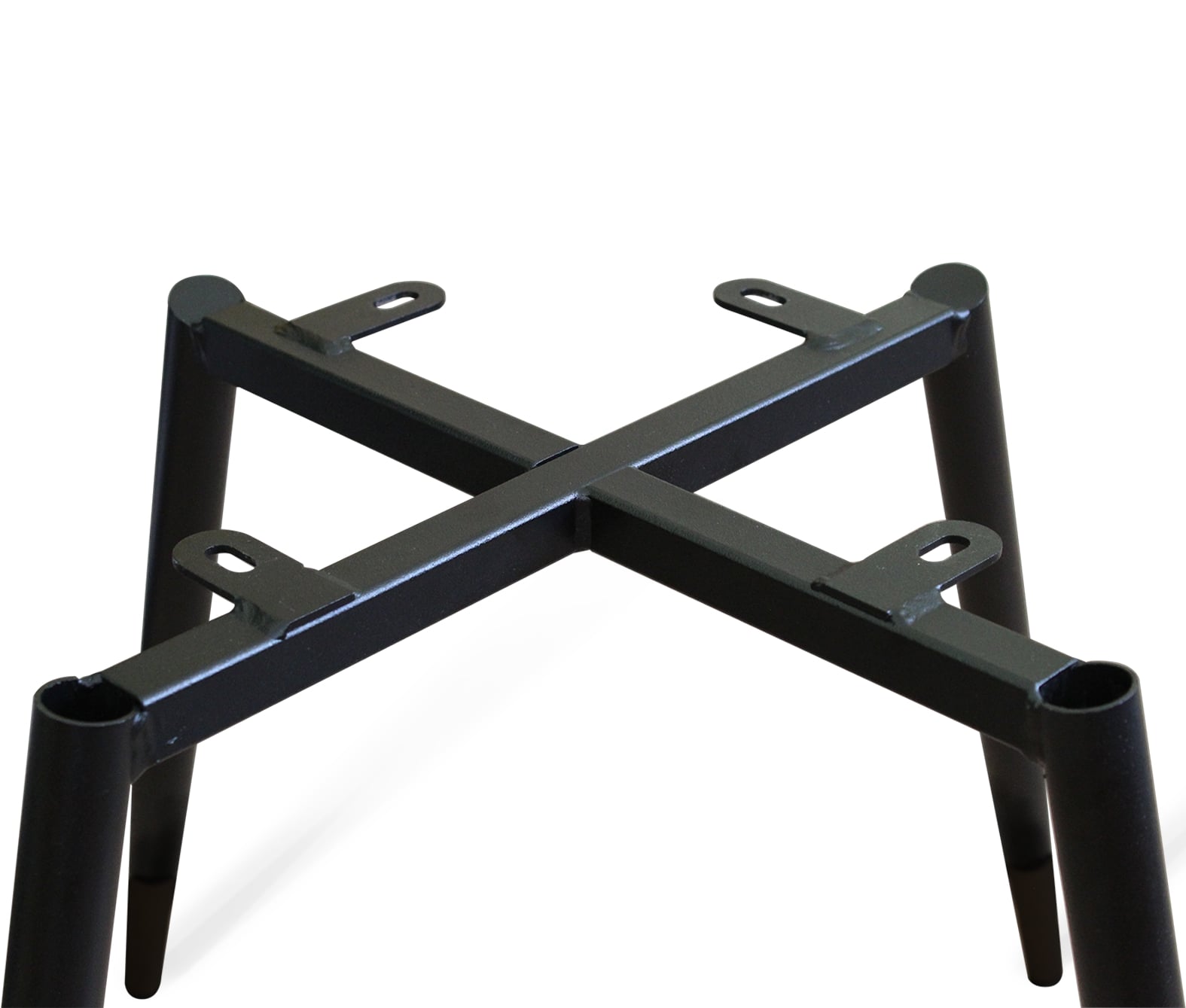 Ножки каркаса выполнены из металлической трубы диаметром 25 мм. Верхняя крестовина каркаса с приварными фланцами выполнена из квадратной трубы 20х20 мм. Каркас не разборный и окрашен порошковой краской, устойчивой к механическому воздействию. Максимальная статическая нагрузка на каркас – 200 кг.