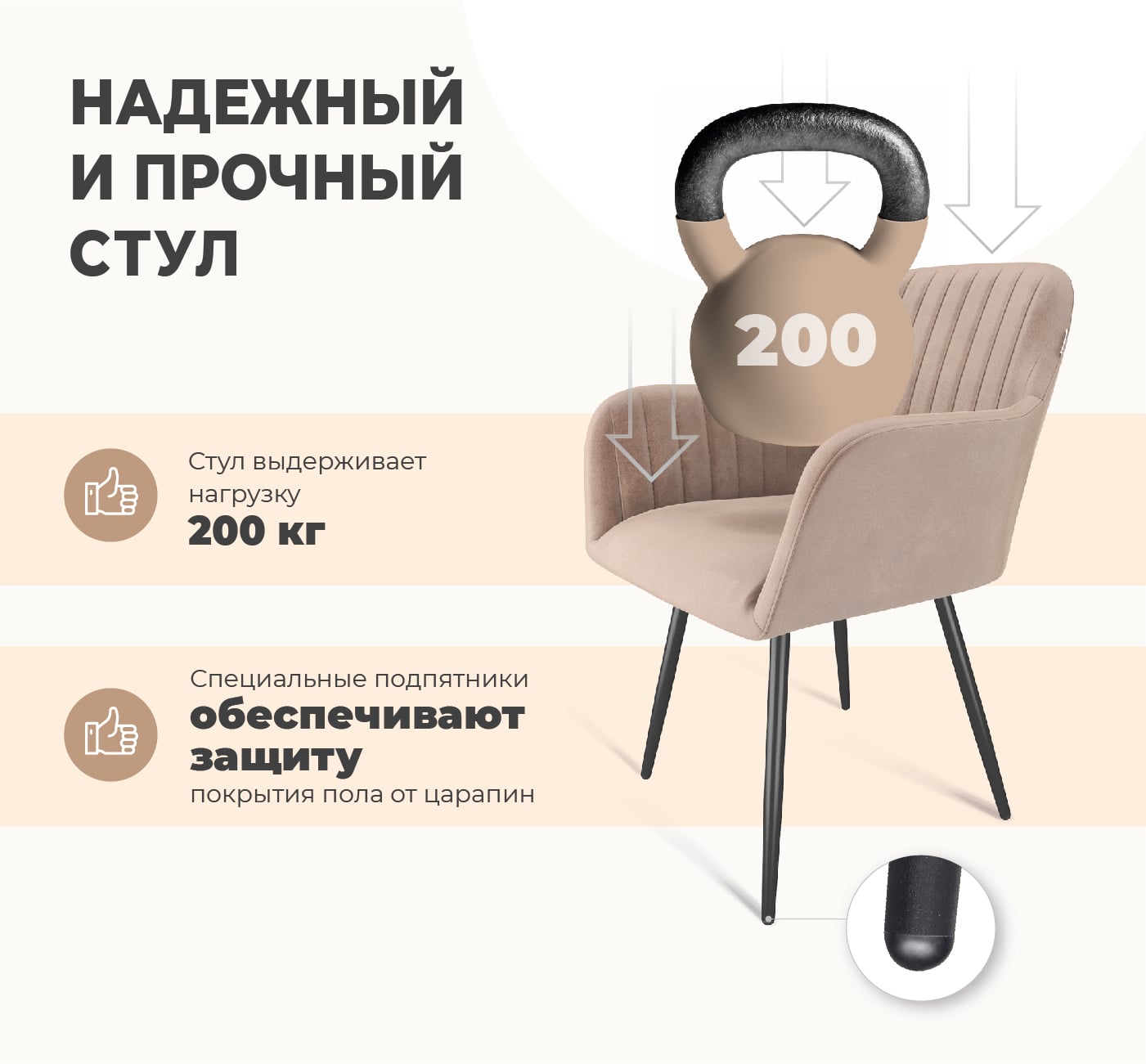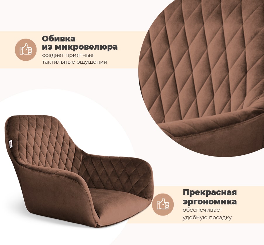 Оригинальную нотку каркасу придают конусообразные ножки. Классический вид сиденью придает стеганое сиденье и спинка. Благодаря натуральному цвету микровелюра – готовое кресло способно преобразить обстановку и добавить естественности! Сиденье изысканно смотрится при любом варианте освещения: и естественном, и искусственном.