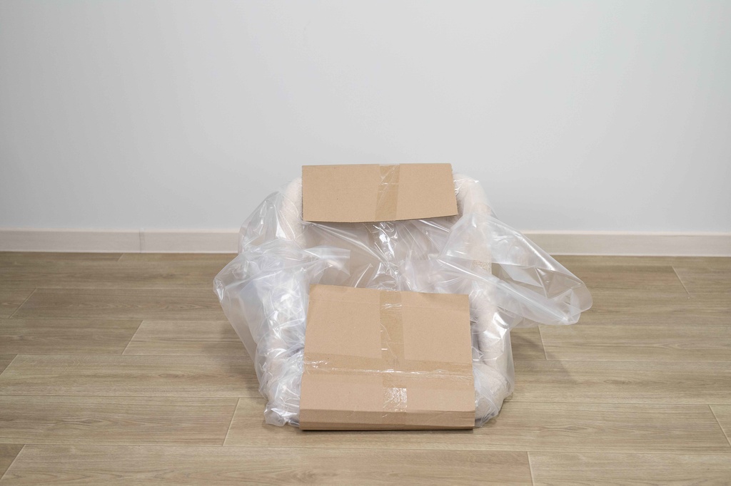 ОБИВКА выполнена из букле, в качестве мягкого наполнителя используется поролон.