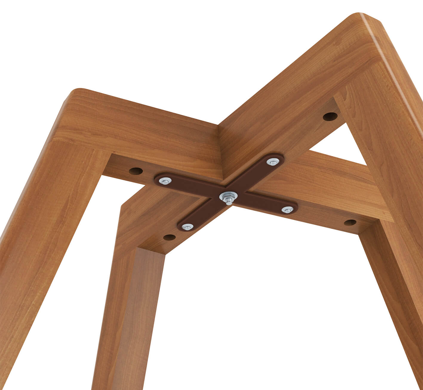 В модели предусмотрена металлическая крестовина, которая придает жесткость конструкции и продлевает срок службы, толщина крестовины 1,5 мм., крепится с помощью саморезов и мебельного болта с нижней стороны каркаса.