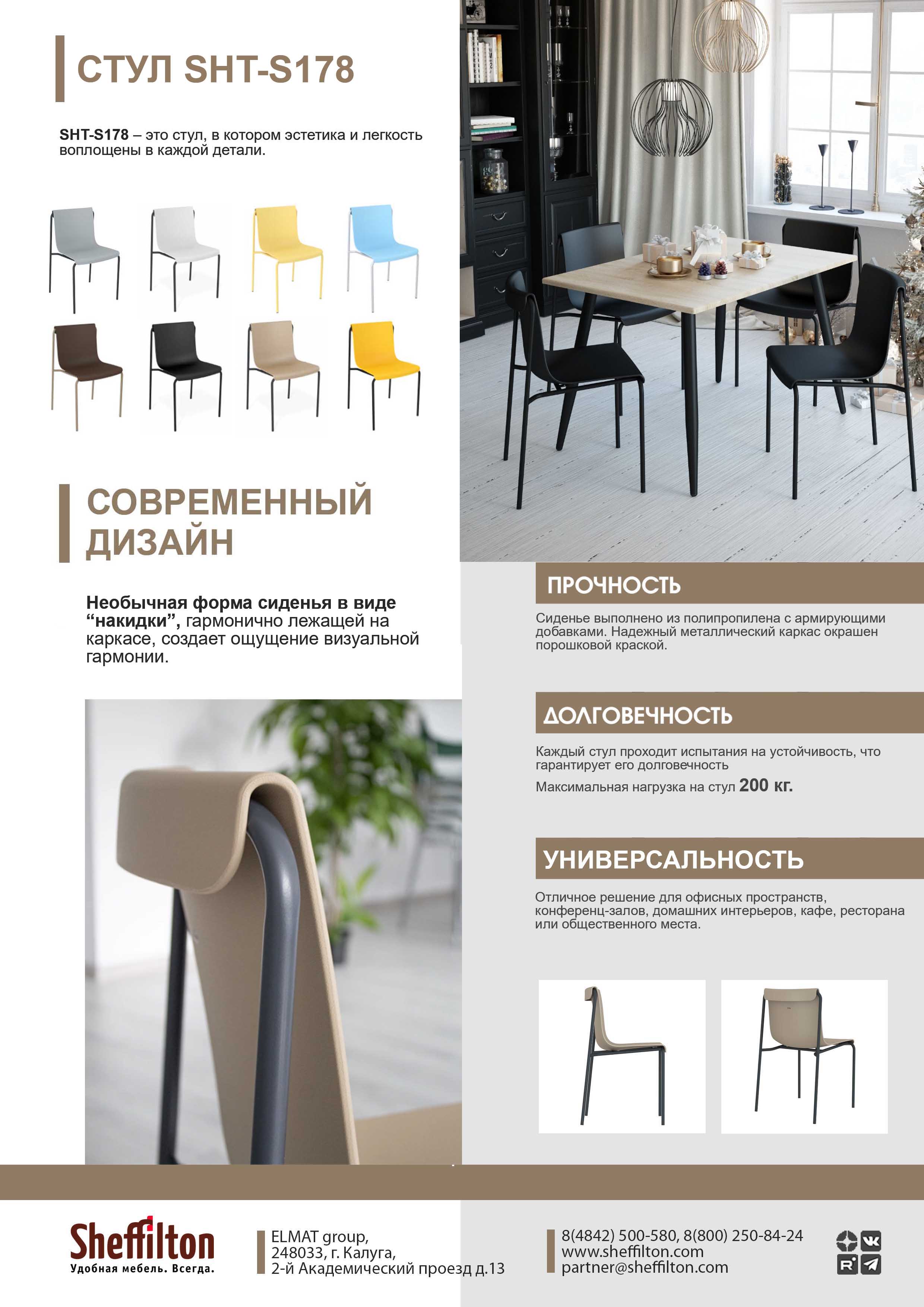 Стул SHT-S178 воплощает в себе концепцию эстетики и легкости. Необычная форма сиденья в виде "накидки", гармонично лежащей на каркасе, создаёт ощущение визуальной гармонии. Уникальный дизайн стула станет настоящим акцентом в интерьере офисных пространств, конференц-залов, кафе, отелей, ресторанов и дома, привлекая внимание и добавляя характер в пространство.