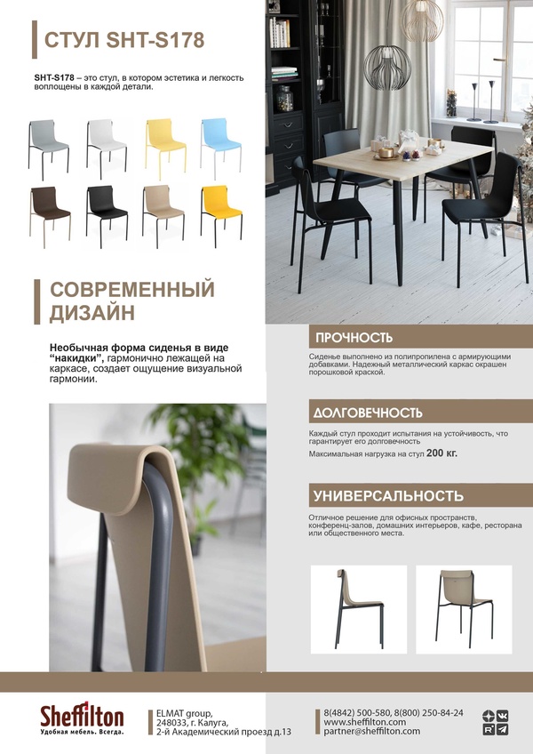 Стул SHT-S178 воплощает в себе концепцию эстетики и легкости. Необычная форма сиденья в виде "накидки", гармонично лежащей на каркасе, создаёт ощущение визуальной гармонии. Уникальный дизайн стула станет настоящим акцентом в интерьере офисных пространств, конференц-залов, кафе, отелей, ресторанов и дома, привлекая внимание и добавляя характер в пространство.