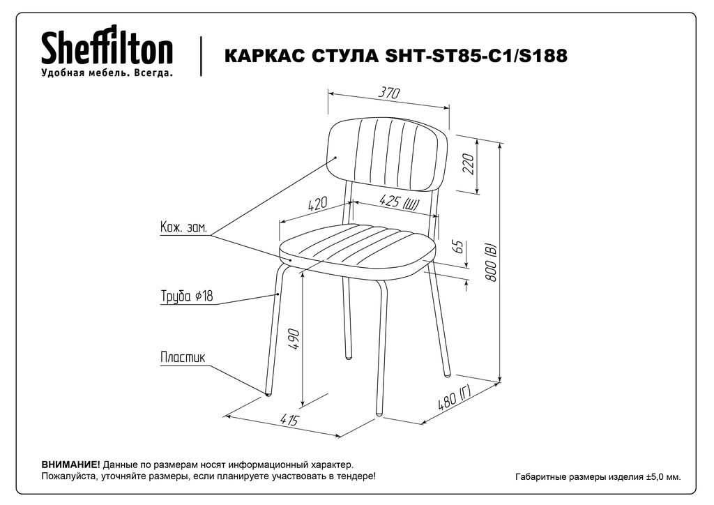 ВНИМАНИЕ! Каркасы стульев разработаны и протестированы для использования исключительно с сиденьями ТМ Sheffilton. При использовании с сиденьями других производителей компания не несёт ответственности и гарантийных обязательств.