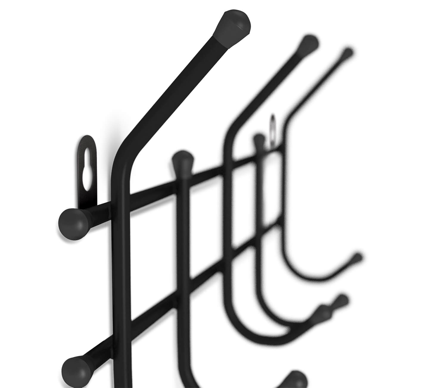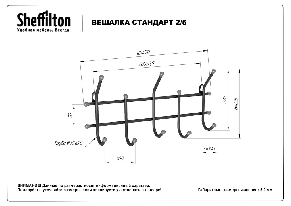 Вешалка выполнена из металлической трубы 10 мм. и пластиковой фурнитуры 12 мм.