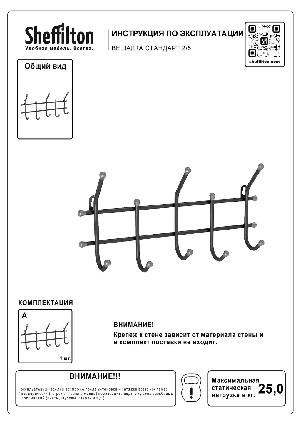 Максимальная распределенная статическая нагрузка на крючок - 5 кг.